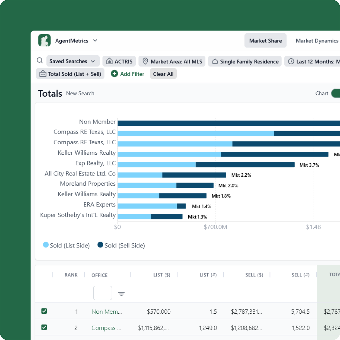Lone Wolf AgentMetrics equips you with the insights you need to dominate your market, build trust with clients, and make data-driven decisions.