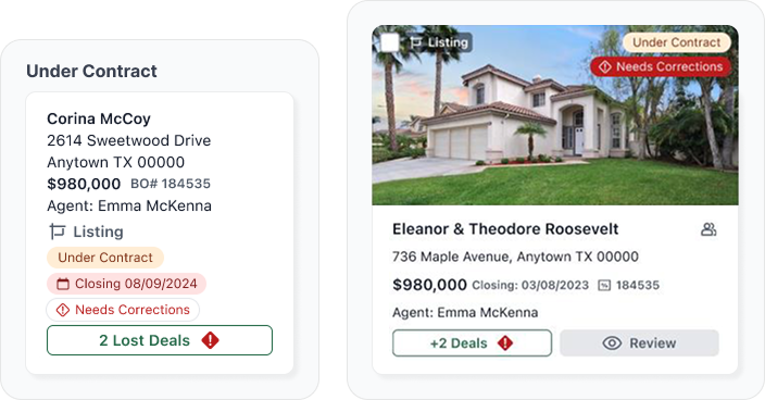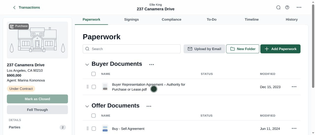 Displaying agent names makes it easier to identify ownership and manage multiple transactions across teams without confusion.