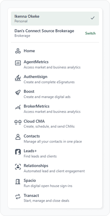 The updated App Switcher now centralizes client selection and clearly separates legacy products from current tools, making it easier for users to navigate between brokerage, MLS, and individual account environments.